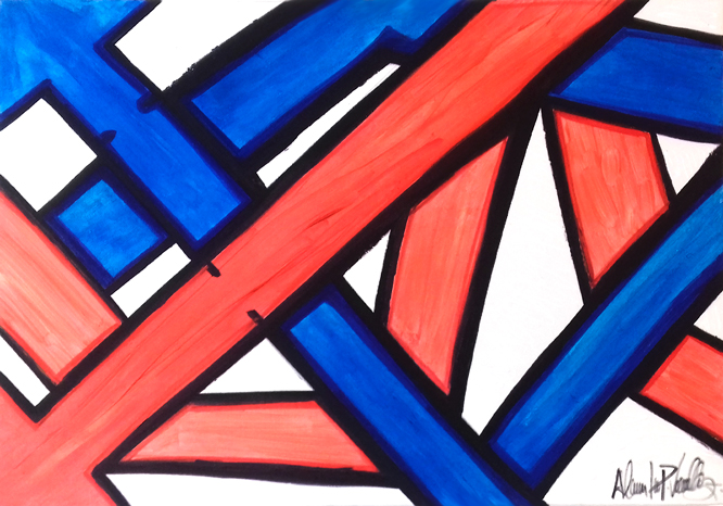 Ao mesmo tempo a tela demostra camadas brancas podendo ser objetos de desenhos cubistas que foram formados pelo percorrer das setas presentes na tela.