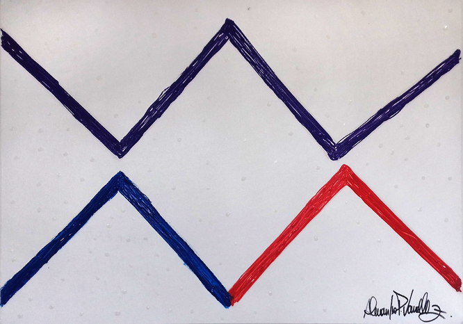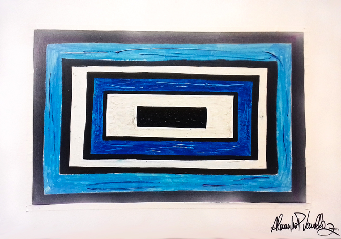 O Ser Humano depois que passa a existir precisa de proteção em sua vida nessa tela expressa esta condição na simbologia dos triângulos unidos sendo o vermelho o lado terra e o azul o lado céu, sua união da o lilas a cor da espiritualidade.