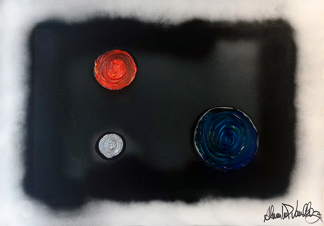 Representa o inicio de tudo, o Universo criado por Deus, com a Terra, o Sol e a Lua. Suas posições na tela seguem uma regra chamada Regras dos Terços de acordo com a disposição de desenhos em telas sendo em pintura de auto relevo, com uma aspiral no meio representando o movimento de sua energia vital que cada corpo celeste tem como simbologia da existência de vida.